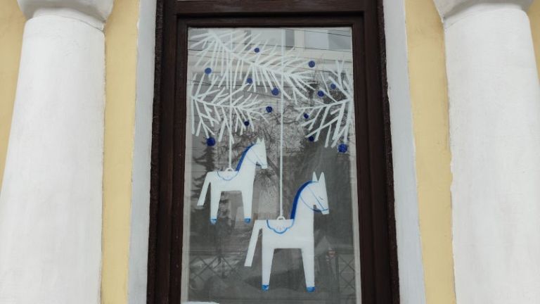 Весеннее оформление сменило зимнее – менять украшение окон «художки» каждый сезон уже стало традицией.