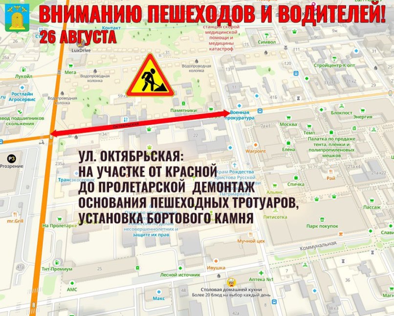 На Октябрьской рабочие демонтируют основание пешеходных тротуаров и устанавливают бортовой камень от Красной в сторону Пролетарской. На улице Носовской на всём протяжении участка специалисты обустраивают парковочные карманы и основание пешеходных тротуаров.