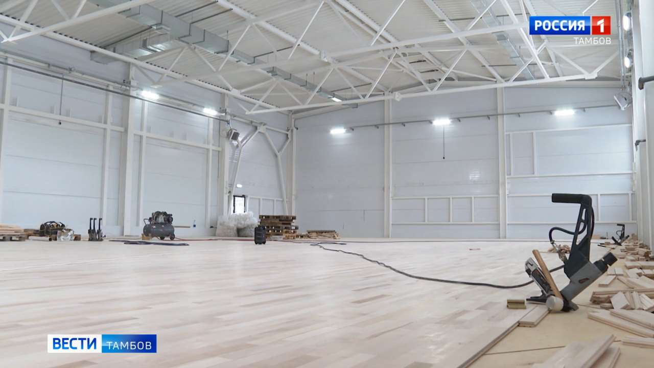Подрядчику пришлось изрядно потрудиться, чтобы из ангара сделать современный спортивный комплекс с раздевалками, душевыми и тренерскими. За год сюда подвели отопление и коммуникации, провели электрику, установили окна и двери, выполнили наружную отделку, сейчас заканчивают укладывать паркет, монтировать вентиляцию, после чего приступят к отделочным работам.