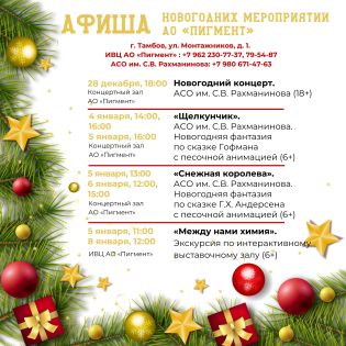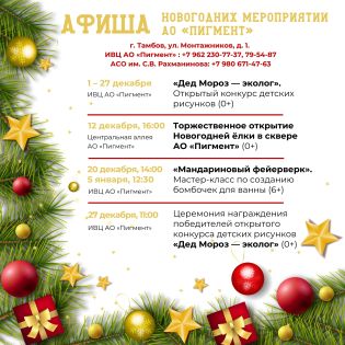 Отметим, что при формировании новогодней зоны в «Пигмента» специалисты используют новые интерактивные эффекты – сейчас это более 60 световых композиций. Гостей ждут и новинки световой иллюминации. А для самых маленьких тамбовчан на большом экране, установленном на здании старого заводоуправления, будут представлены любимые сказки и мультфильмы.