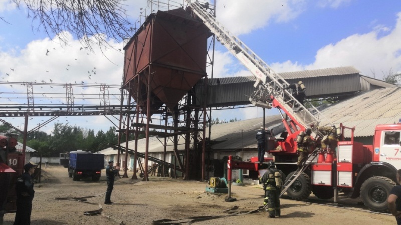На Мичуринском элеваторе провели пожарно-тактические учения. Согласно легенде, в одном из помещений зернохранилища произошло короткое замыкание и как следствие – пожар.