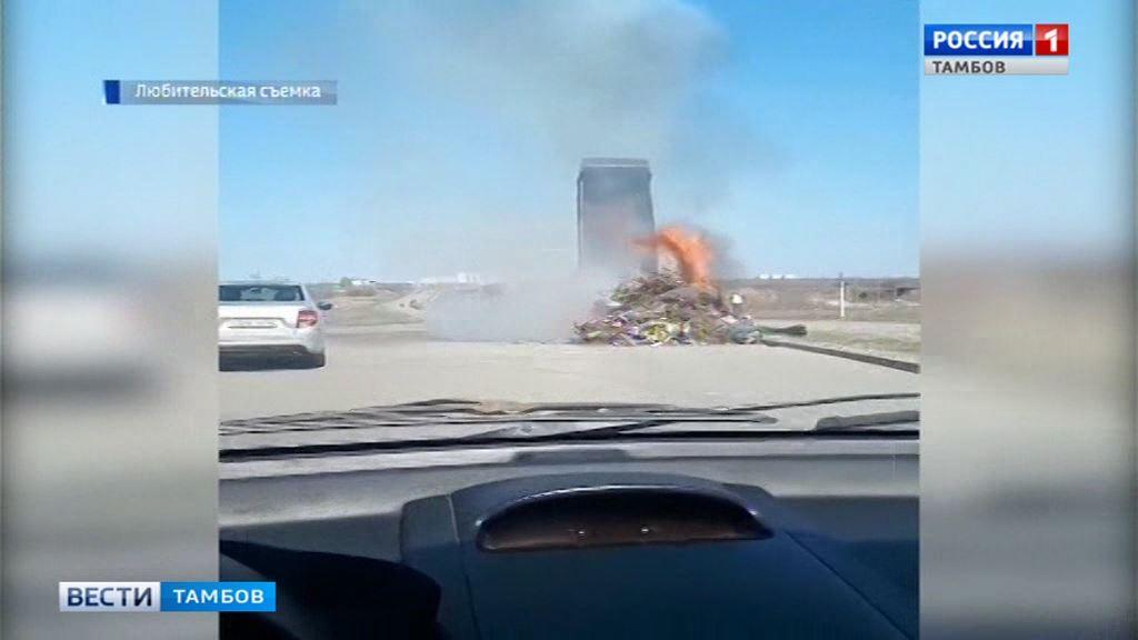 На новом путепроводе в Тамбове загорелся грузовик с мусором
