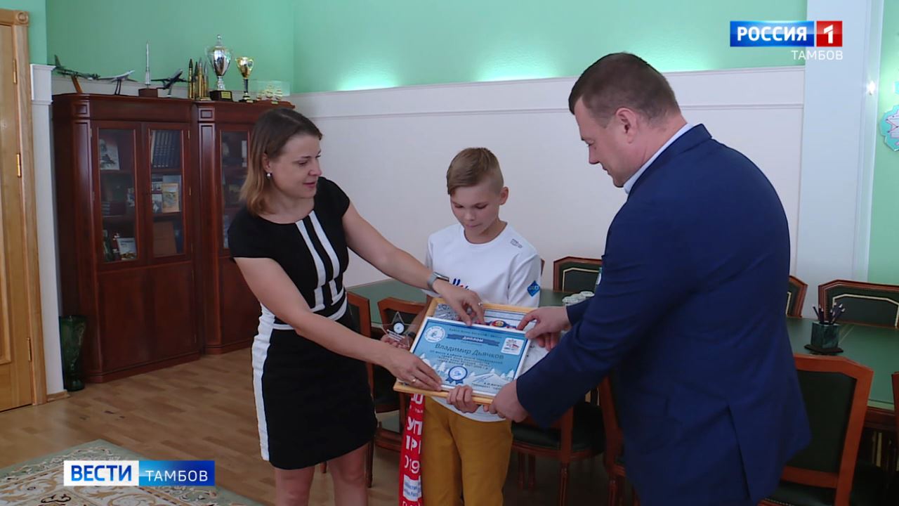 Олимпийская чемпионка Анна Богалий наградила юного тамбовского биатлониста Владимира Дьячкова