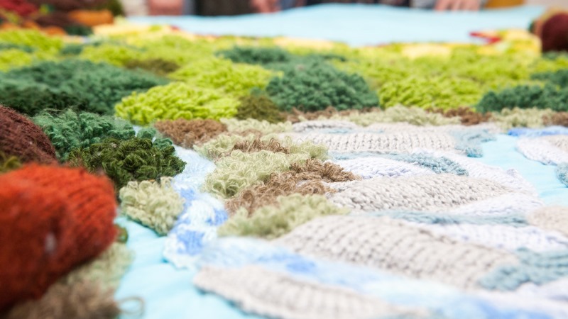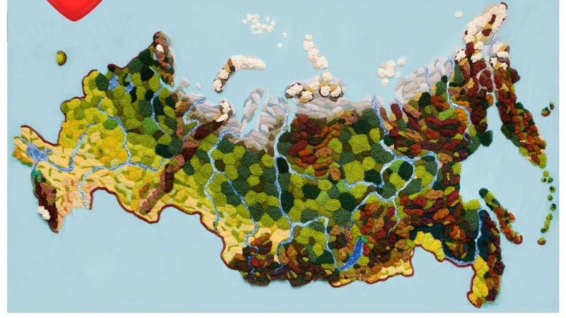 Общая протяжённость рек на вязаной карте – более 15 метров. На предгорья и горные массивы Кавказа, Урала, Саян, Алтая, Хибин и других понадобилось более 500 фрагментов и 20 оттенков пряжи. Высота гор на вязаной карте – от 4 до 13 сантиметров.