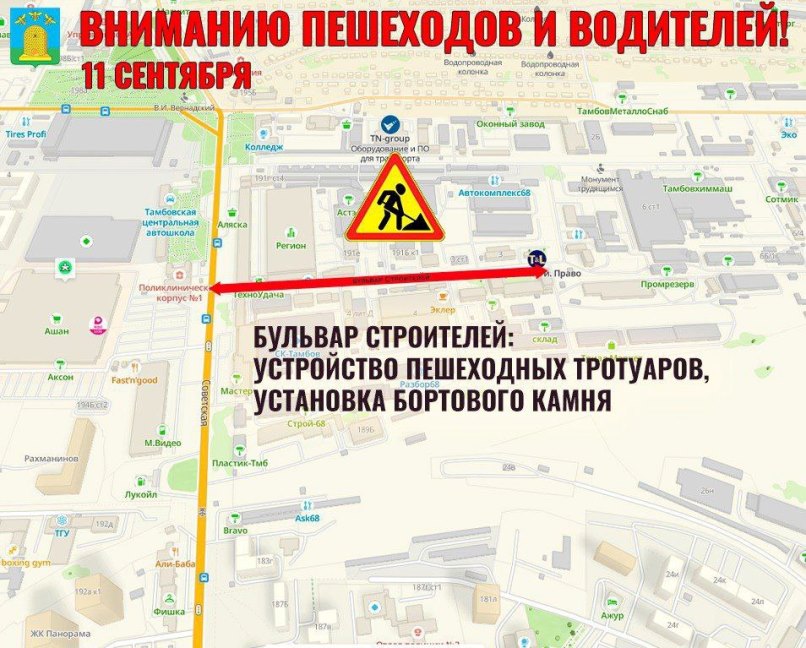 В Тамбове продолжаются дорожные работы. На сегодня запланированы следующие мероприятия: