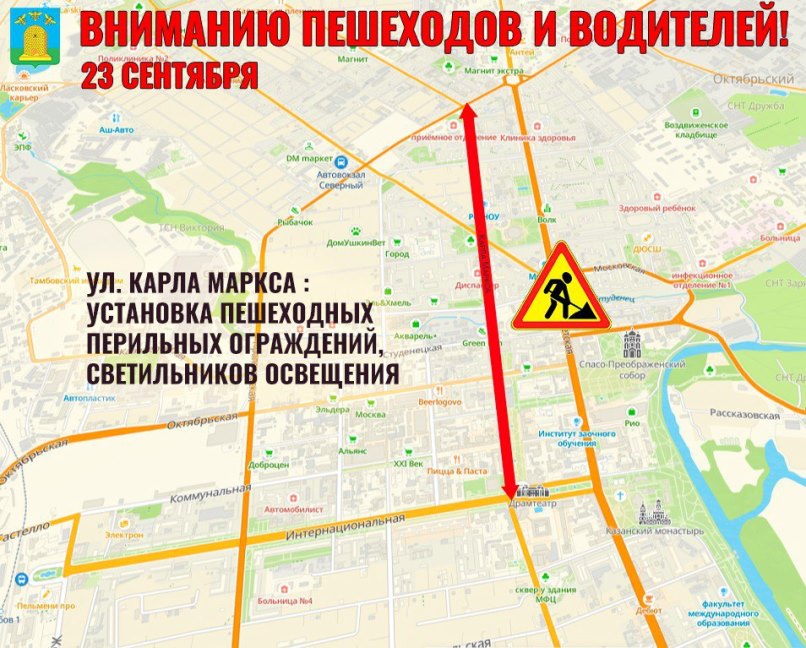 - улица Карла Маркса – установка пешеходных ограждений и светильников;