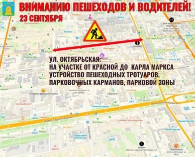 - улица Октябрьская – устройство пешеходных тротуаров, парковочных карманов и парковой зоны от улицы Красной до Карла Маркса;