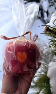 Сложнее всего было сохранить каждое яблоко до февраля, так как данный сорт хранится до января. Но именно ханни крисп дает хороший окрас и возможность осуществить проект по уникальным естественным рисункам на яблоках,
