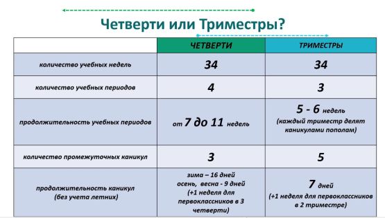 Подробнее о масштабном нововведении на планёрке в администрации города рассказала председатель комитета образования Ирина Васильева. По ее словам, каждый триместр будет делиться пополам таким образом, чтобы дети учились 5-6 недель, а затем неделю отдыхали.