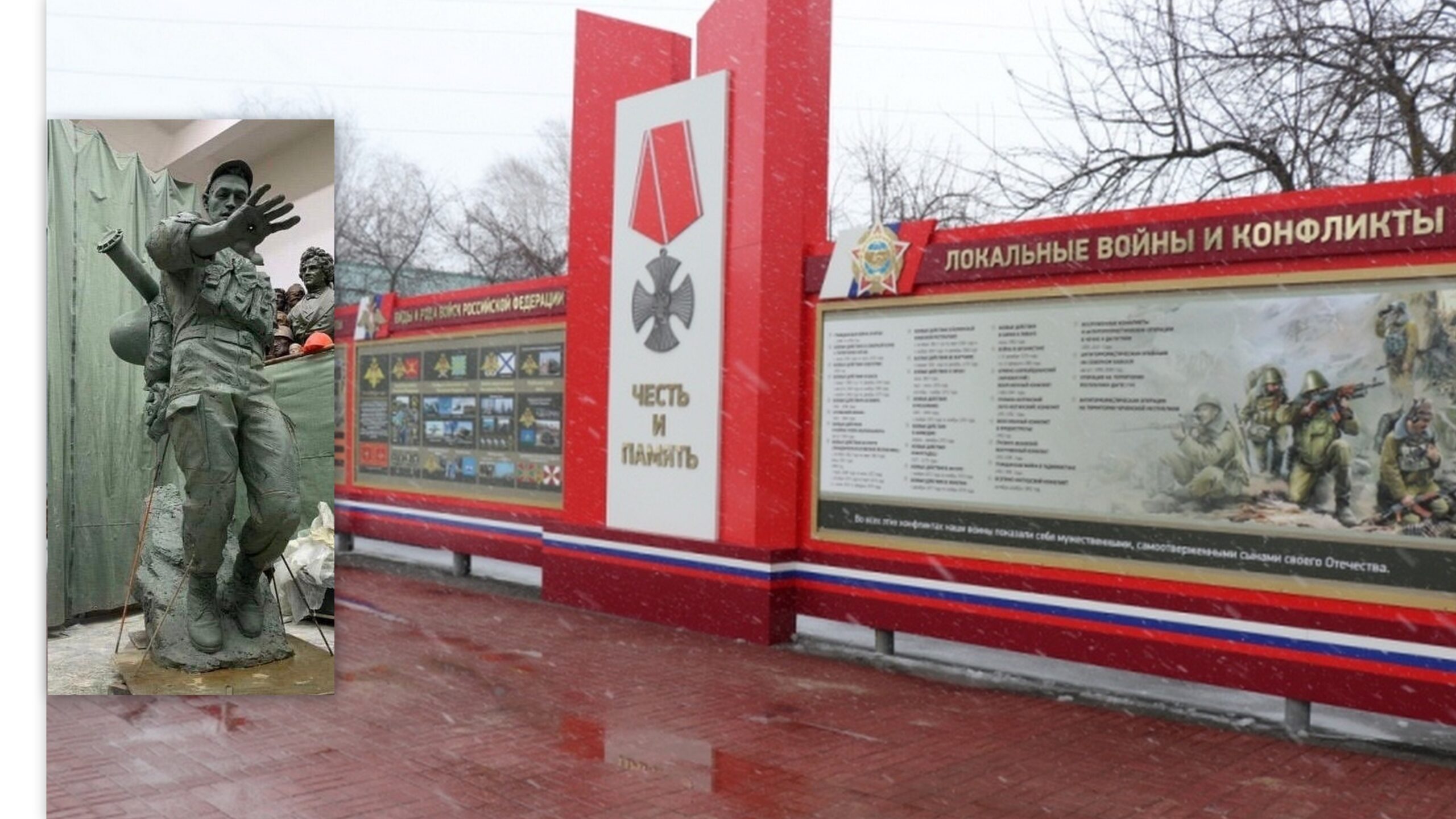 Отметим, что таким же способом – голосованием в соцсетях - жители города выбирали и вариант макета будущего памятника ветеранам боевых действий. Первый вариант в виде коленопреклонённого солдата не получил поддержки большинства горожан. Продолжительный период инициативная группа отрабатывала новый макет с учётом поступающих предложений. Второй вариант памятника разработал скульптор Андрей Следков. Он изобразил солдата, который защищает взятую высоту.