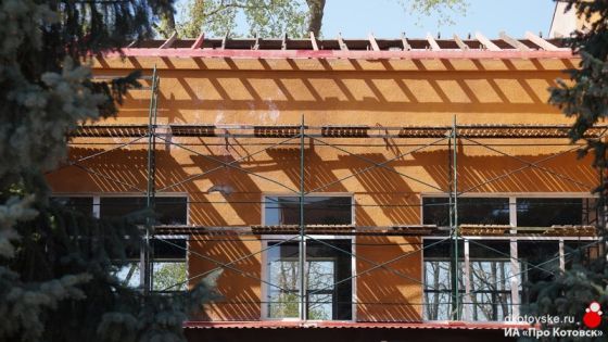 Подрядная организация приступила к ремонту фасада в середине апреля. Рабочие демонтировали две кровли над Голубым и спортивным залом. Сейчас осуществляется монтаж обрешётки. На неё сверху будут класть профлист. Мы вместе с администрацией города и областной государственной организацией «Капиталстрой» контролируем выполнение работ на всех этапах,
