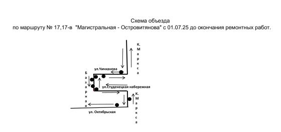 На время вводимых ограничений автобусы маршрутов № 17 и 17в будут работать по изменённым схемам. С улицы Октябрьской общественный транспорт завернёт на Карла Маркса, затем – на Студенецкую набережную, а затем вновь выедет на Карла Маркса. В обратном направлении автобус проедет с улицы Карла Маркса на Чичканова, потом проследует до Базарной, а с Базарной повернёт на Октябрьскую.