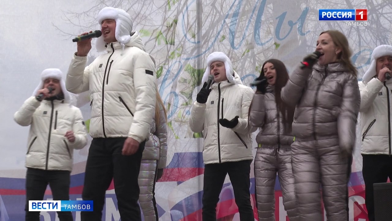 Несмотря на пасмурную погоду, в парке культуры сегодня настоящая весна, Крымская. Люди собрались, чтобы отпраздновать день воссоединения Крыма с Россией. И даже холод не мешает празднованию единства,