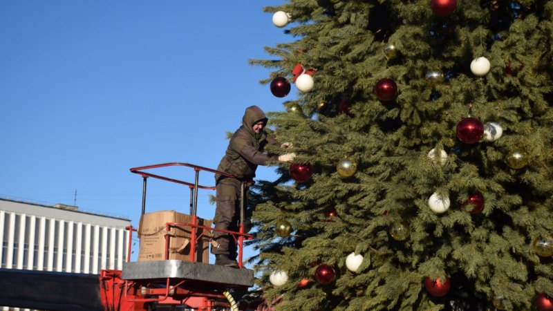 Всего бригаде предстоит убрать более 350 шаров. Высота хвойной красавицы составляет 15 метров. Её сформировали из 160 ёлок.