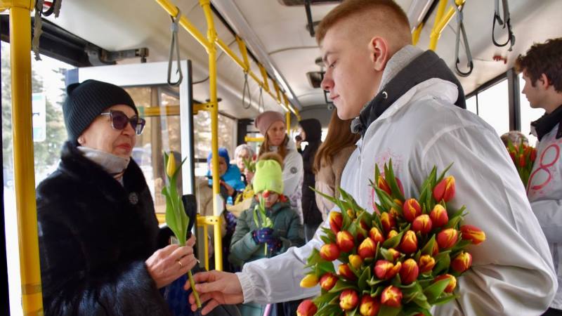 Тамбовская область присоединилась ко всероссийской акции «Вам, любимые», приуроченной к Международному женскому дню. Первыми поздравления принимали пассажиры автобуса № 1 — волонтёры дарили цветы, пели под гитару и создавали праздничное настроение прямо в пути.