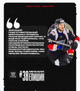 28-летний хоккеист клуба «Тамбов» Михаил Епишин признан лучшим защитником 22-ой игровой недели регулярного Чемпионата России в ВХЛ. Такое решение комиссия лиги приняла на основании статистических результатов и аналитики специальных экспертов. Епишин в двух матчах заработал два результативных балла при показателе полезности «+3». Обе шайбы Михаил забросил в домашнем поединке с воскресенским «Химиком», оформив дубль (на 16-ой и 60-ой минутах). Напомним, матч, состоявшийся 2 февраля, команда Сергея Решетникова выиграла со счётом 7:4.