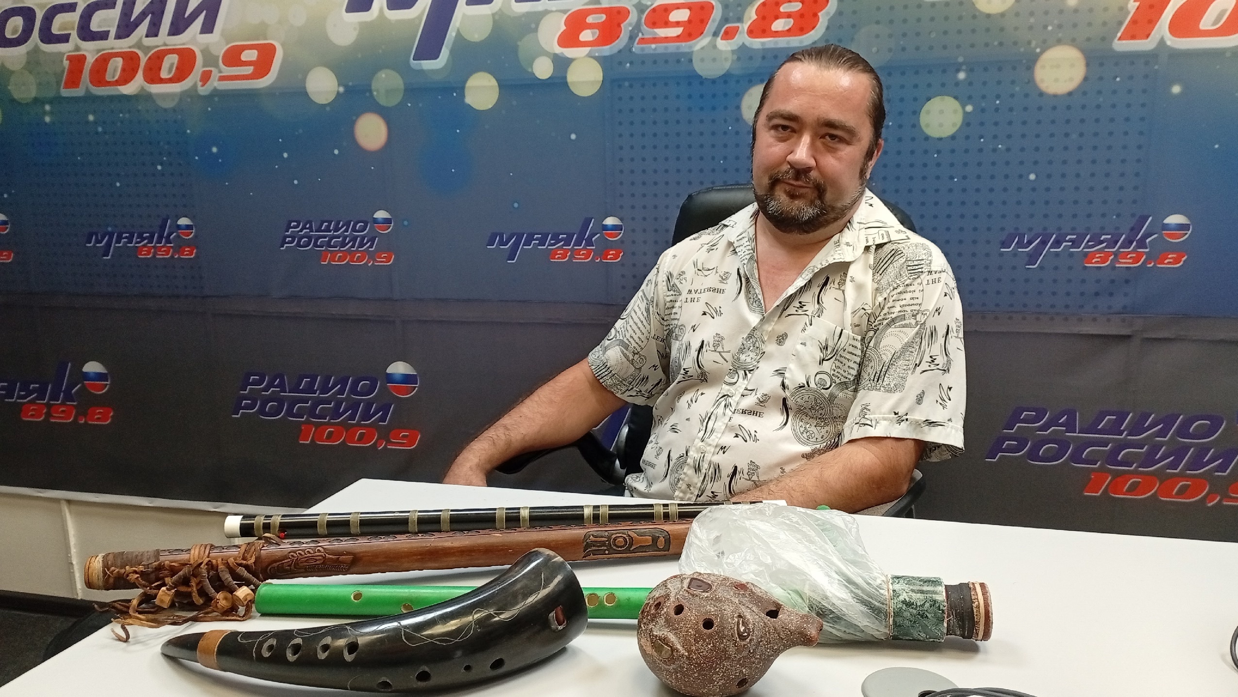 Один из основателей группы «Огнецвет», художник по свету Тамбовского молодежного театра и Театра кукол на протяжении ряда лет собирает и осваивает музыкальные инструменты со всего мира. Так, в коллекции башкирский курай, разнообразные акарины, в том числе изготовленная даже из скорлупы грецкого ореха, гемсхорны из рога. В нашей программе сегодня эти и другие музыкальные инструменты «заговорят». Услышим бамбуковую Ди-цзы с дополнительным не игровым отверстием «ди», звучащую как язычковый музыкальный инструмент. Зазвучит и индейская «флейта любви». Кстати, многие их этих потрясающих духовых можно услышать не только в нашей программе, но и 15, 16 и 17 августа в Усадьбе Асеевых. Здесь, под сенью деревьев, с шумом ветра и запахом сена состоится показ спектакля «Олеся» по повести Александра Куприна. Живая духовая музыка в исполнении Алексея Блохина придаст истории особую атмосферу и в прямом смысле этого слова новое звучание.