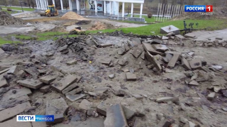 На Площади Музыки в Тамбове начался демонтаж брусчатки, которая была испорчена тяжёлой техникой при реконструкции канализационного коллектора. Плитку заменят на новую.