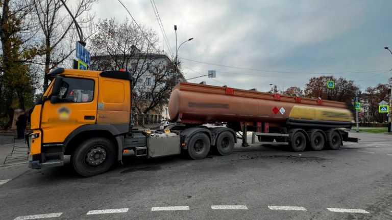 Кадры последствий ДТП, которое произошло на пересечении улиц Пролетарской и Карла Маркса в Тамбове. Столкнулись бензовоз и «Ситроен».