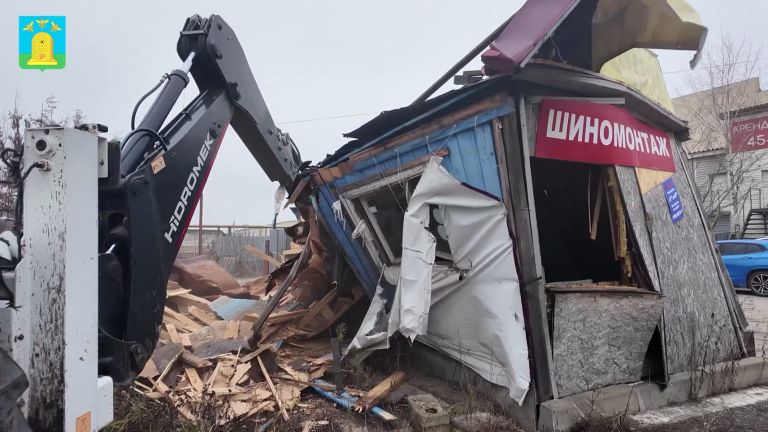 В областном центре продолжается работа по избавлению от несанкционированных торговых павильонов. Сегодня кран оторвал от земли один из ларьков в посёлке Строитель. Напомним, что несанкционированной конструкцией