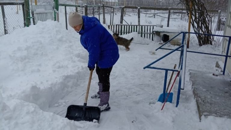 Соцработники, волонтёры, школьники и студенты помогают расчищать дорожки от снега.