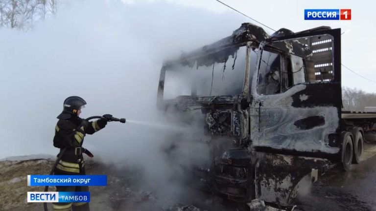 Эти кадры наша съёмочная группа сделала сегодня на трассе в Тамбовском округе, где практически полностью сгорел большегруз.